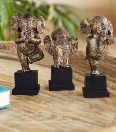 $23.99Polyresin Elephant Showpiece Statue and Artifacts for Home Decor, Living Room, Table Decoration for Gifting, Interiors and Diwali Decoration Golden (Set Of 3)