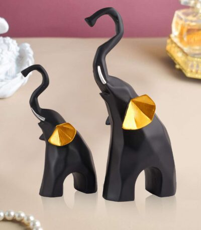 Polyresin Elephant Showpiece Statue and Artifacts for Home Decor, Living Room, Table Decoration for Gifting, Interiors and Diwali Decoration Black (Set Of 2)