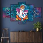 Saumic Craft Presents This Set Of 5 Amazing Paintings For Your Wall . The Painting Will Completely Change The Atmosphere Of The Room Whire It is Placed . The Paintimg Is Made On Heavy Wooden Board And Has A Digital UV Coating On It Which MAKES It Very Easy To Clean . Pricing Of The Product Is Made Very Reasonable From Our Brand As Per The Quality We Are Providing To Our Customers, We Assure That You Will Not Regret Your Purchase, Saumic Craft Is Well Known for Its After Sale Services And In Case If You Feel Some Problem With Any Of Our Product Than You Can Replace It For Free With No Additional Cost . This painting offers a stylish look to your wall as this piece includes three themes it is vastu and also have the essence of abstract and modern art which makes this peice unique and stylish . The 5 pieces wall painting is made with high-quality material, the HD quality print looks fantastic and bright it will not fade easily. With just few simple steps you can mount it to the wall. Thank You For Yor Purchase