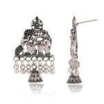 Women’s Indian Traditional AZ838-OXidised Silver Earrings For Women | Elephent Design Jumki Wedding Wear